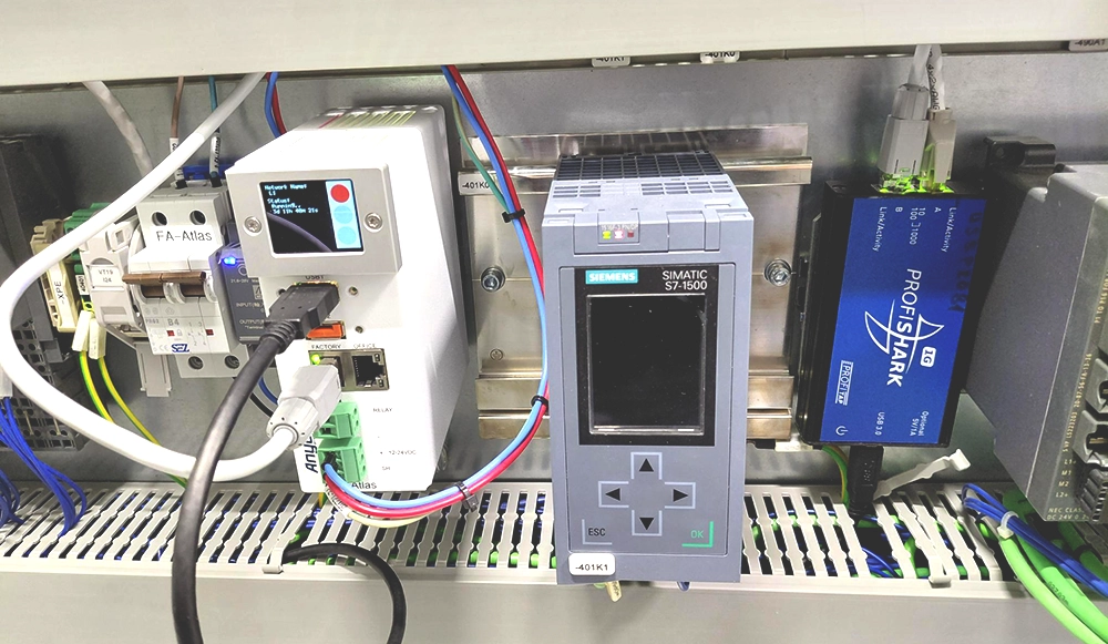 - Backbone/above PLC: Atlas2 + TAP adapter on backbone PROFINET and EtherNet/IP segments—passive capture with precise timing + event logs