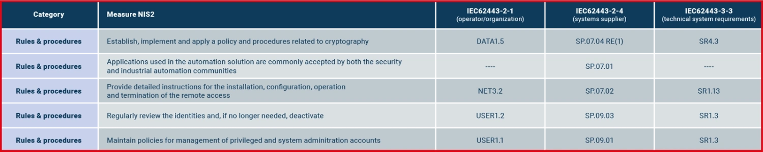 Comparing NIS2 Security Measures with the Corresponding Requirements in IEC 62443